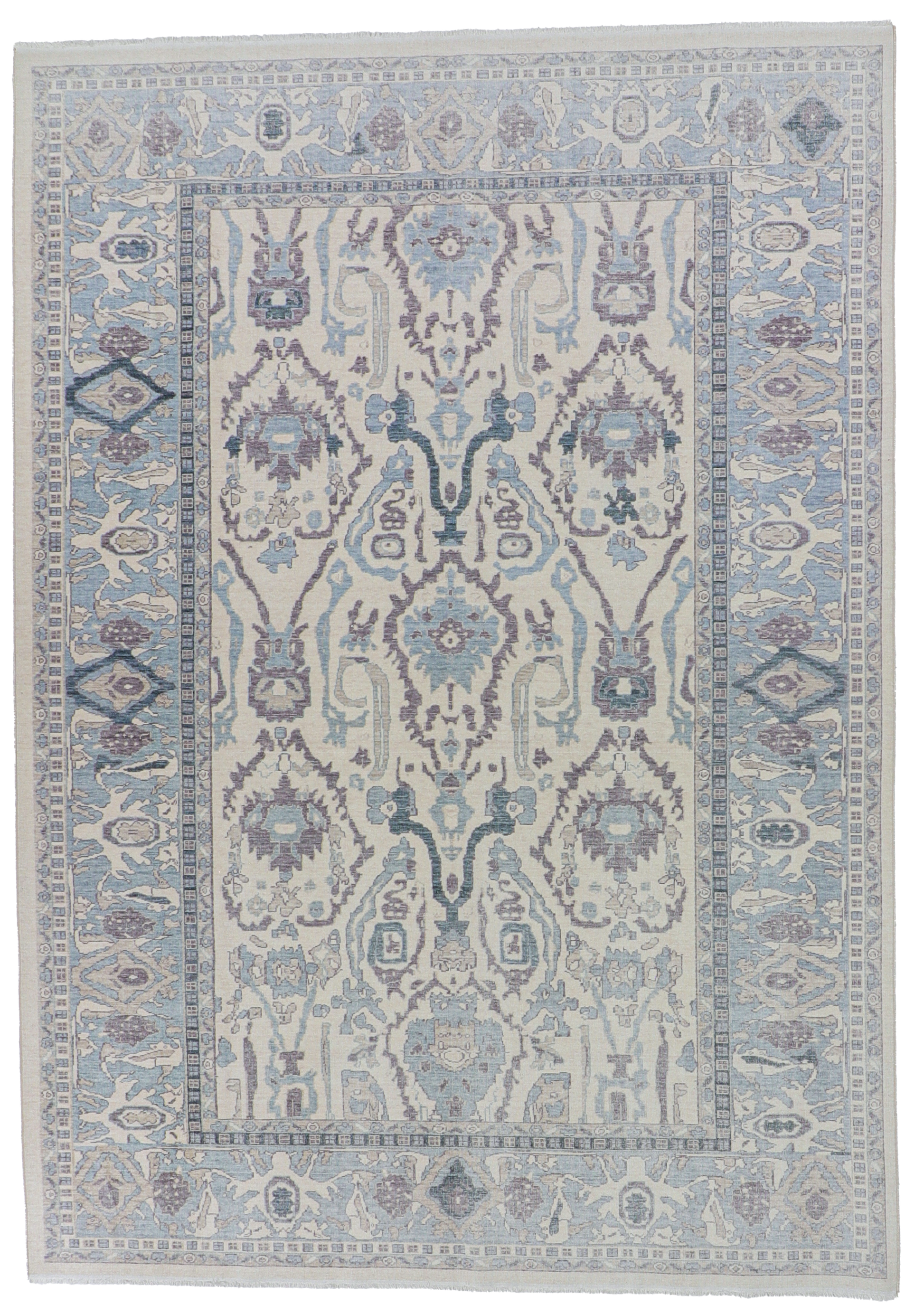 Originating in western Anatolia (modern-day Turkey), Oushak rugs are known for their large-scale geometric medallions, open negative space, and buttery-soft wool handle. Many showcase gentle abrash (tonal variation) and a sun-washed palette—think sand, saffron, apricot, celadon, and misty blues—making them effortless to layer into today’s interiors.
