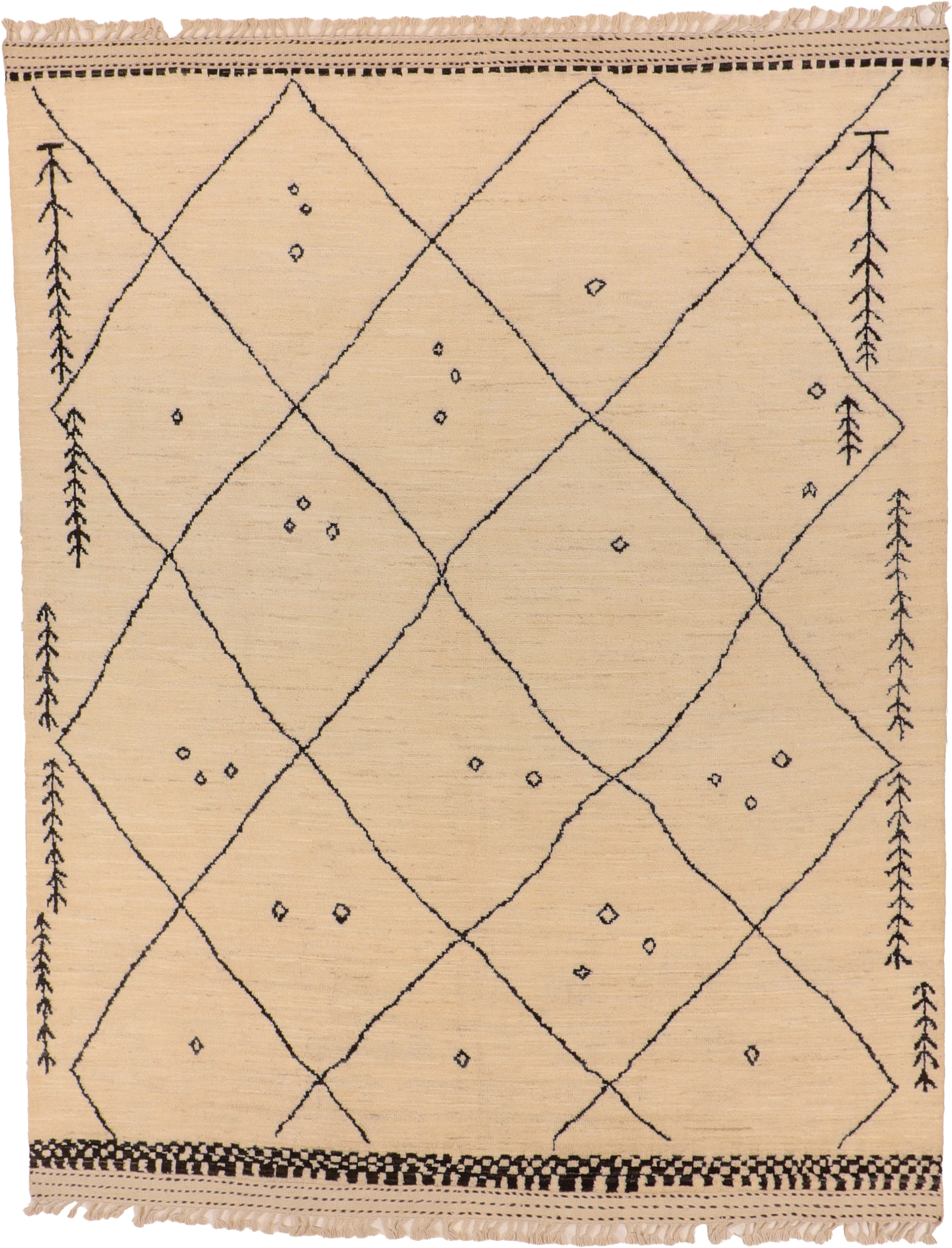 This Modern is hand-knotted in 100% wool, composed in a refined geometric vocabulary that reads confident and collected.