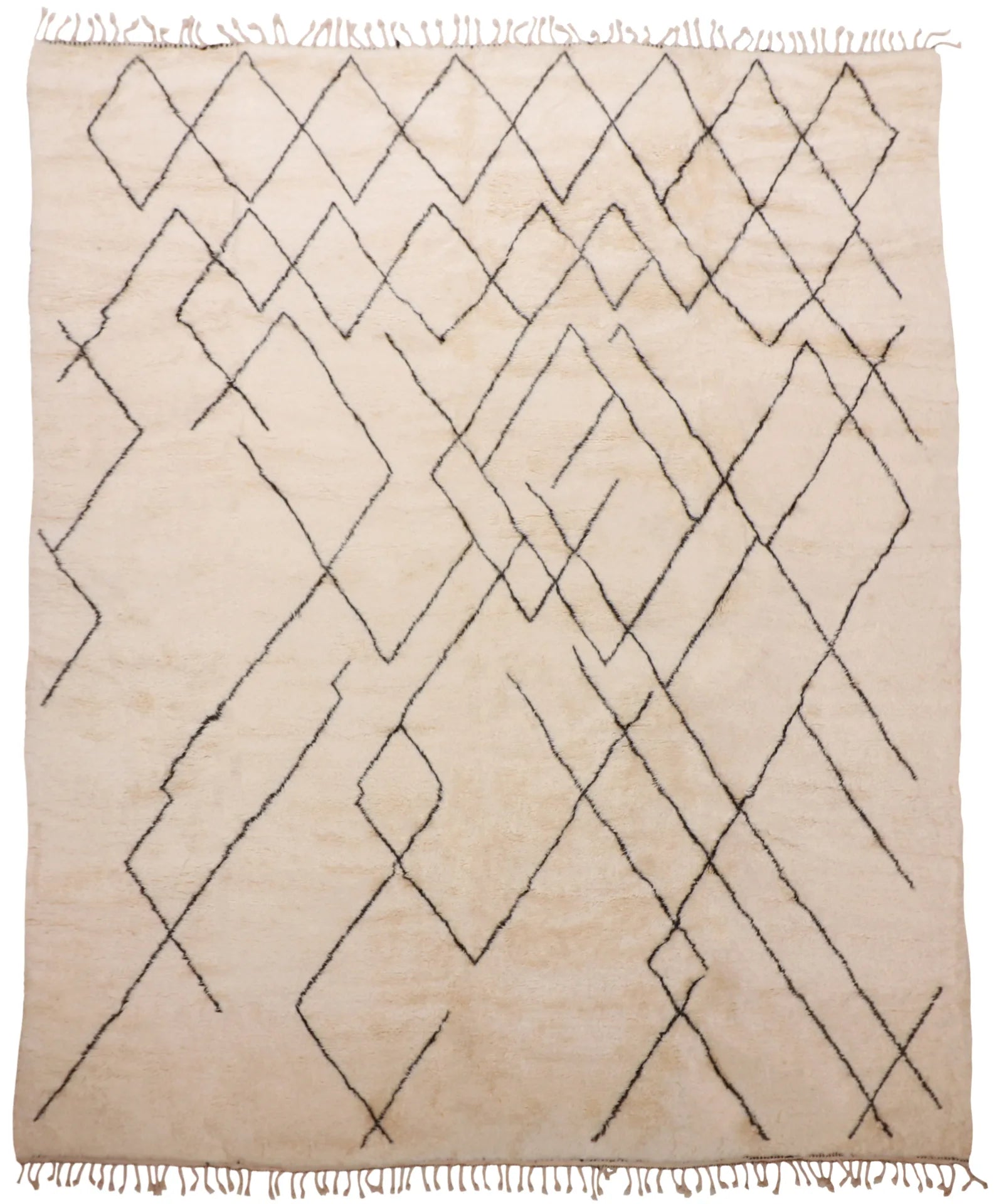 This Moroccan is hand-knotted in 100% wool, composed in a refined all-over vocabulary that reads confident and collected.