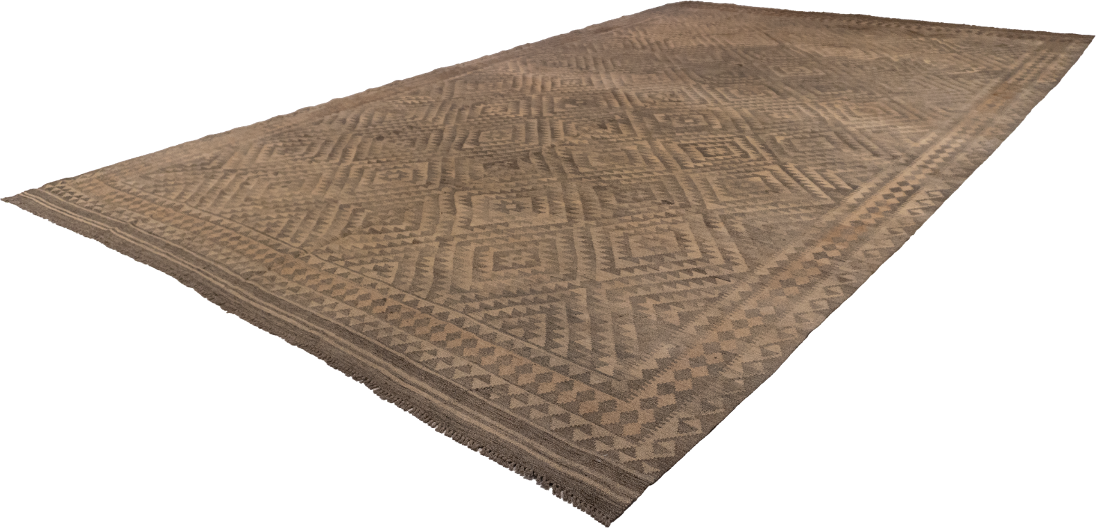 Kilim is a flatweave made by interweaving weft and warp yarns-lightweight, reversible, and perfect for layering. A wool-silk blend combines plush body with a refined, light-catching surface.