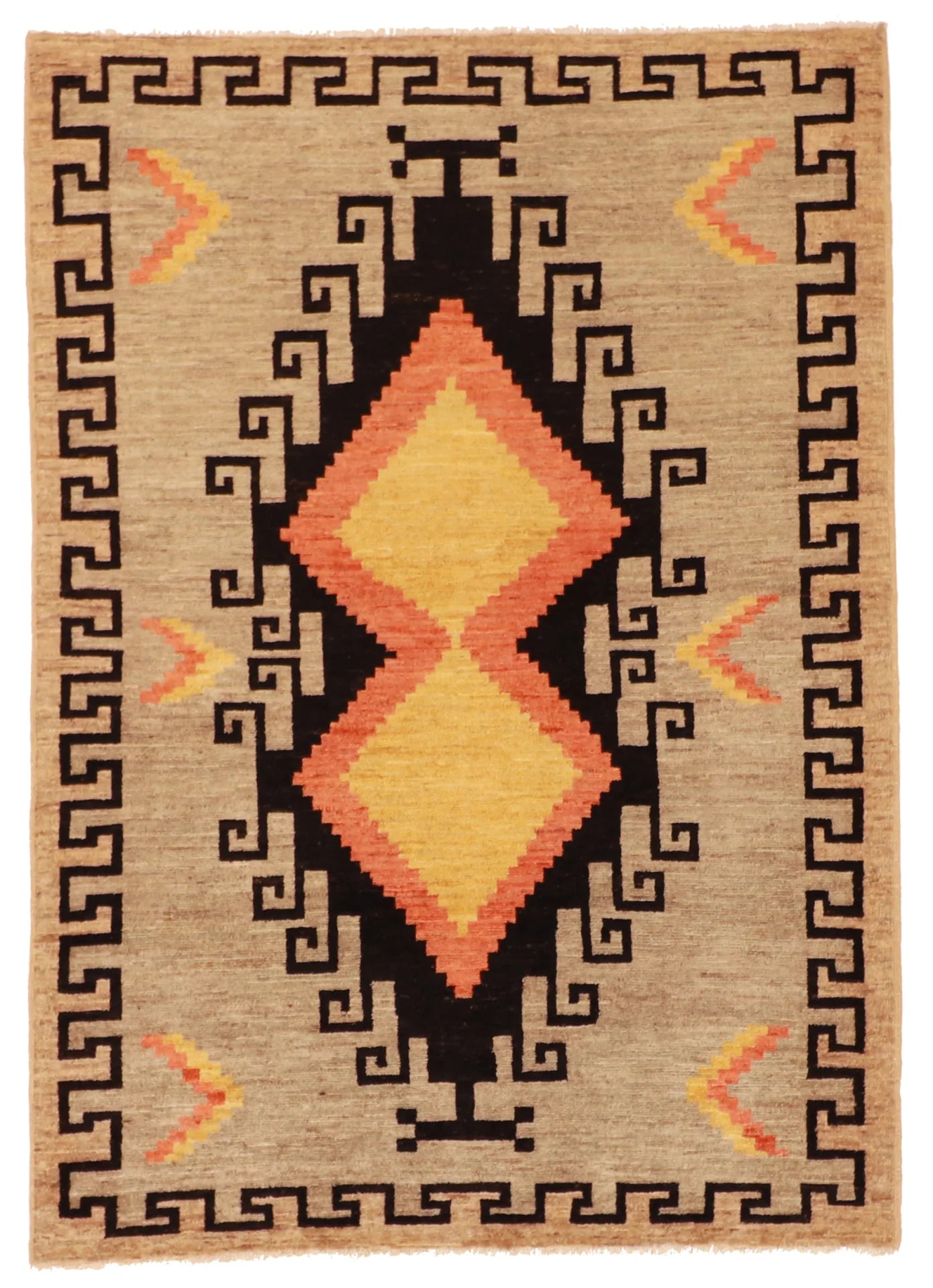 This Mountain Modern is hand-knotted in 100% wool, composed in a refined artisanal vocabulary that reads confident and collected.