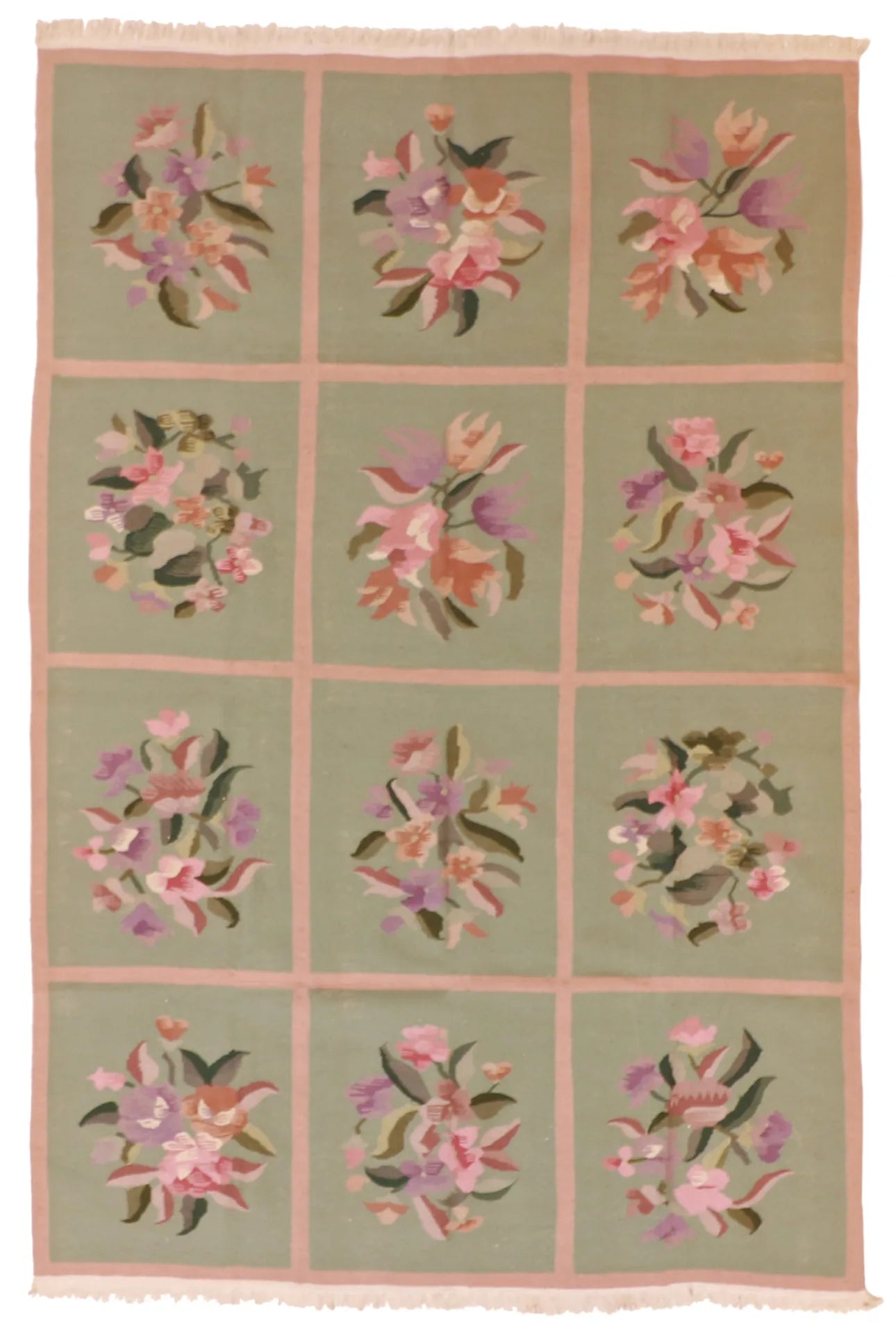 This Kilim is hand-made in 100% wool, composed in a refined all-over vocabulary that reads confident and collected.