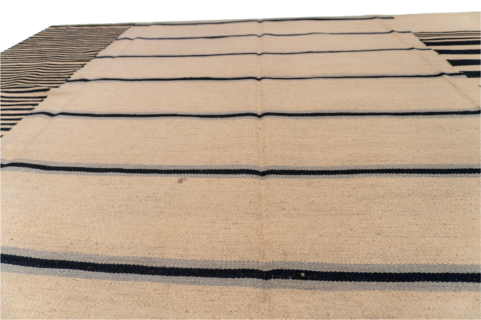 This Kilim is hand-made in 100% wool, composed in a refined all-over vocabulary that reads confident and collected.