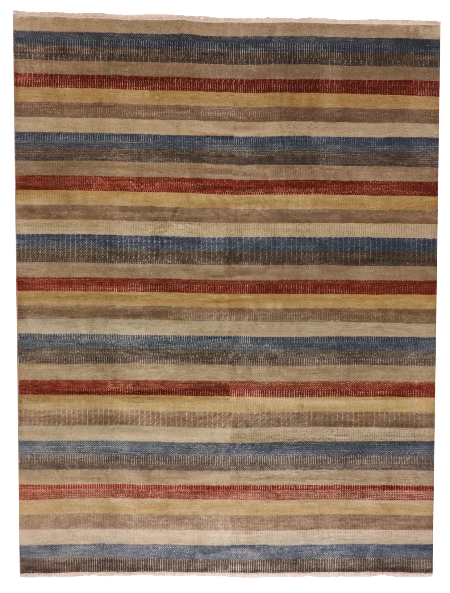 This Modern is hand-knotted in 100% wool, composed in a refined all-over vocabulary that reads confident and collected.