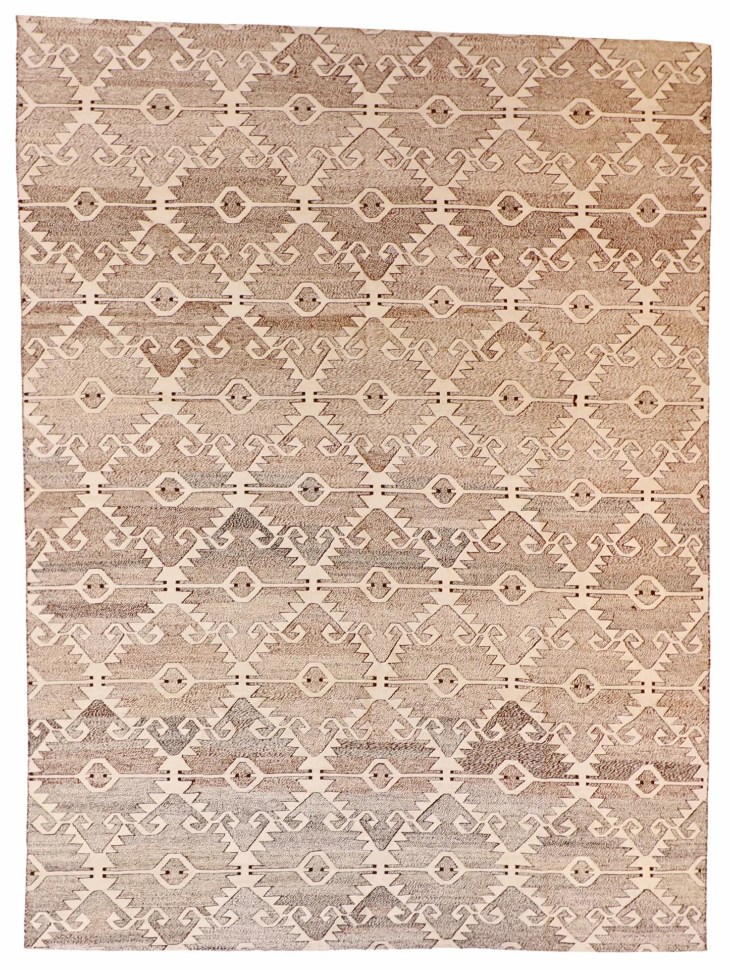 This Kilim is hand-made in 100% wool, composed in a refined all-over vocabulary that reads confident and collected.