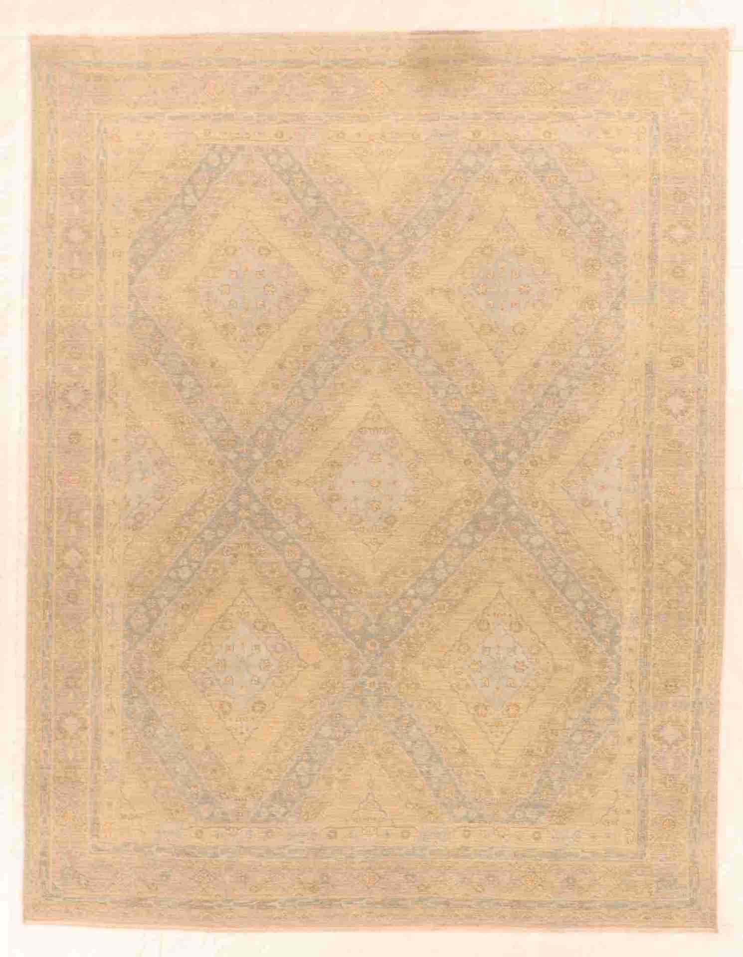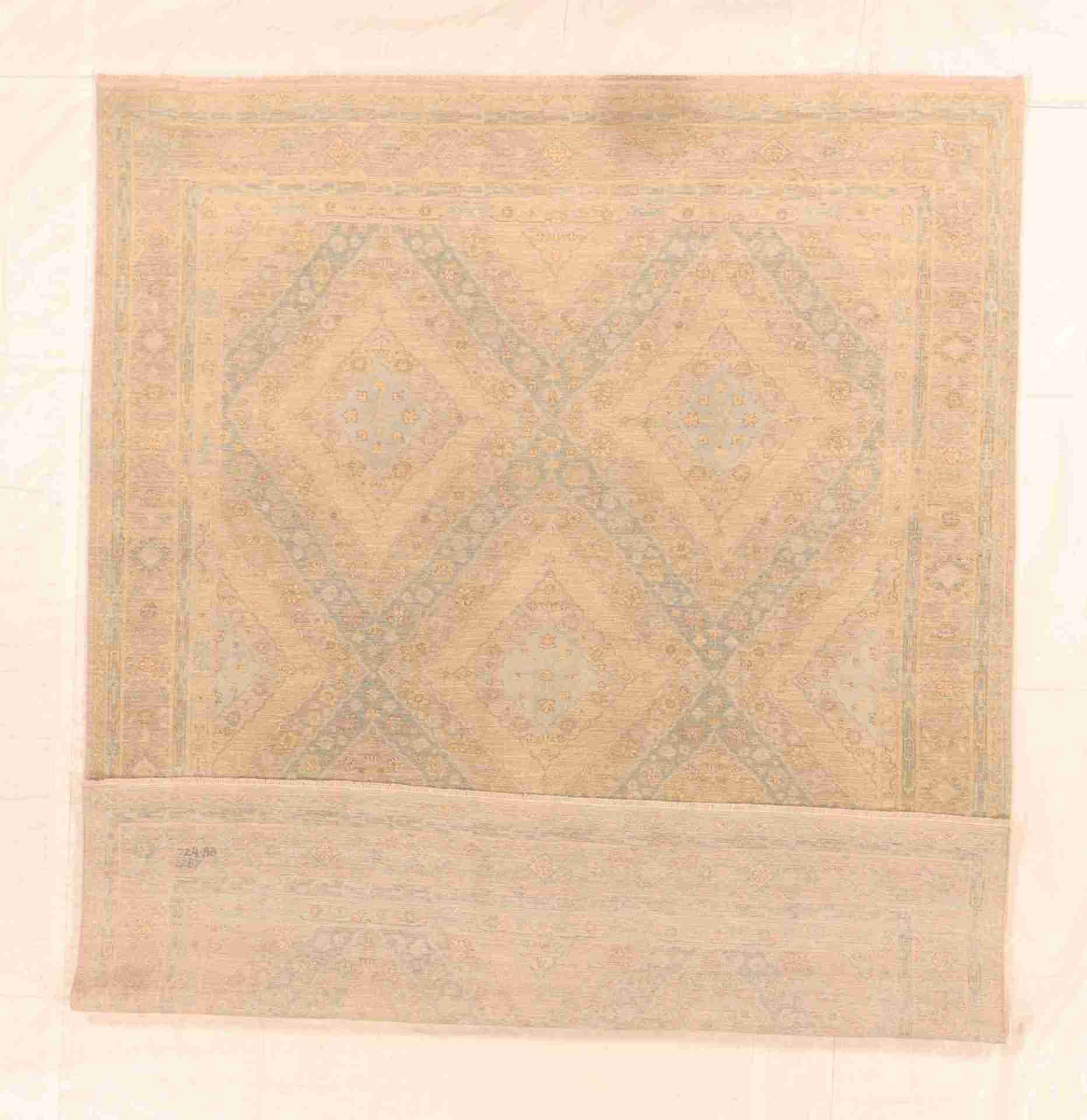 This Transitional is hand-knotted in 100% wool and silk, composed in a refined artisanal vocabulary that reads confident and collected.
