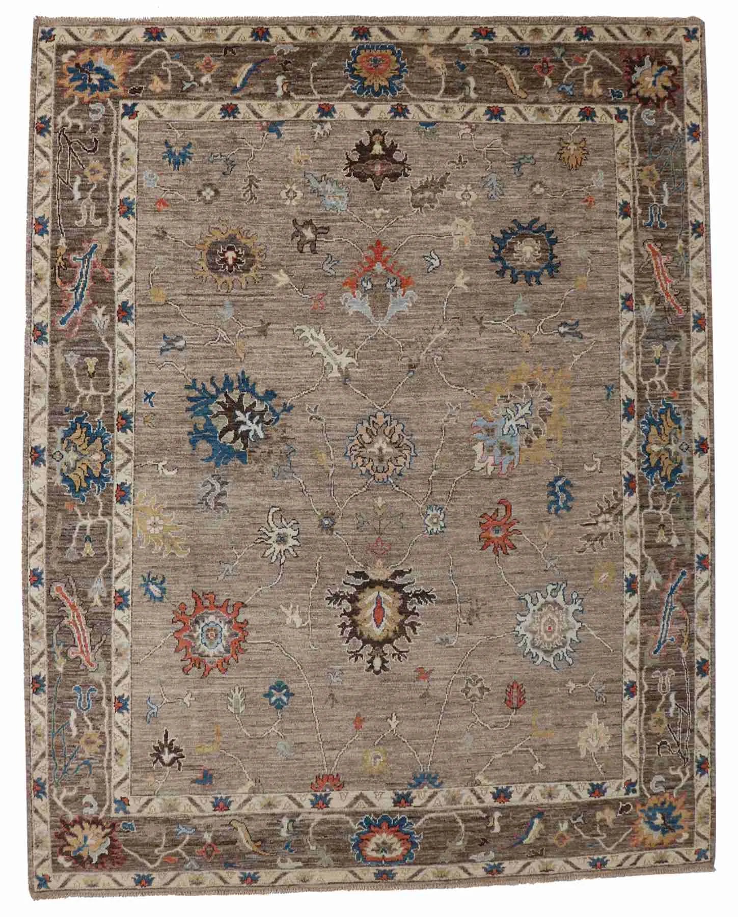 This Oushak is hand-knotted in 100% wool, composed in a refined artisanal vocabulary that reads confident and collected.