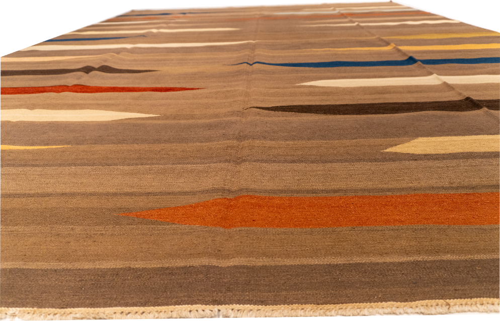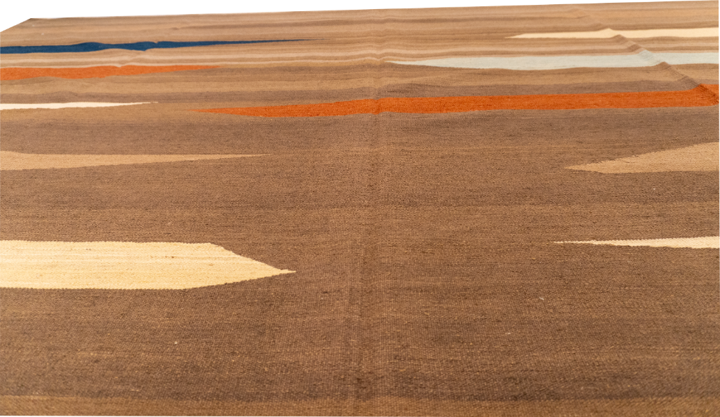 This Kilim is hand-made in 100% wool, composed in a refined all-over vocabulary that reads confident and collected.