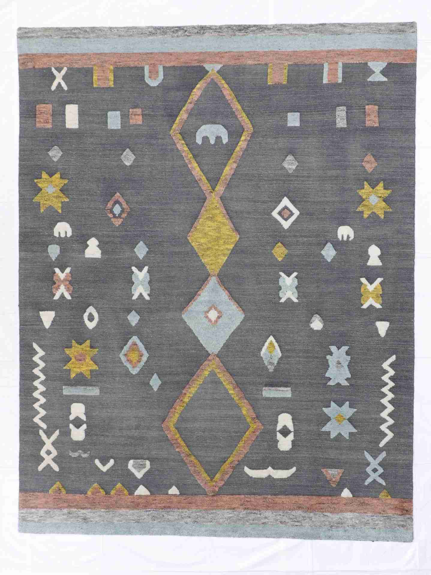 This Modern is hand-knotted in 100% wool, composed in a refined artisanal vocabulary that reads confident and collected.