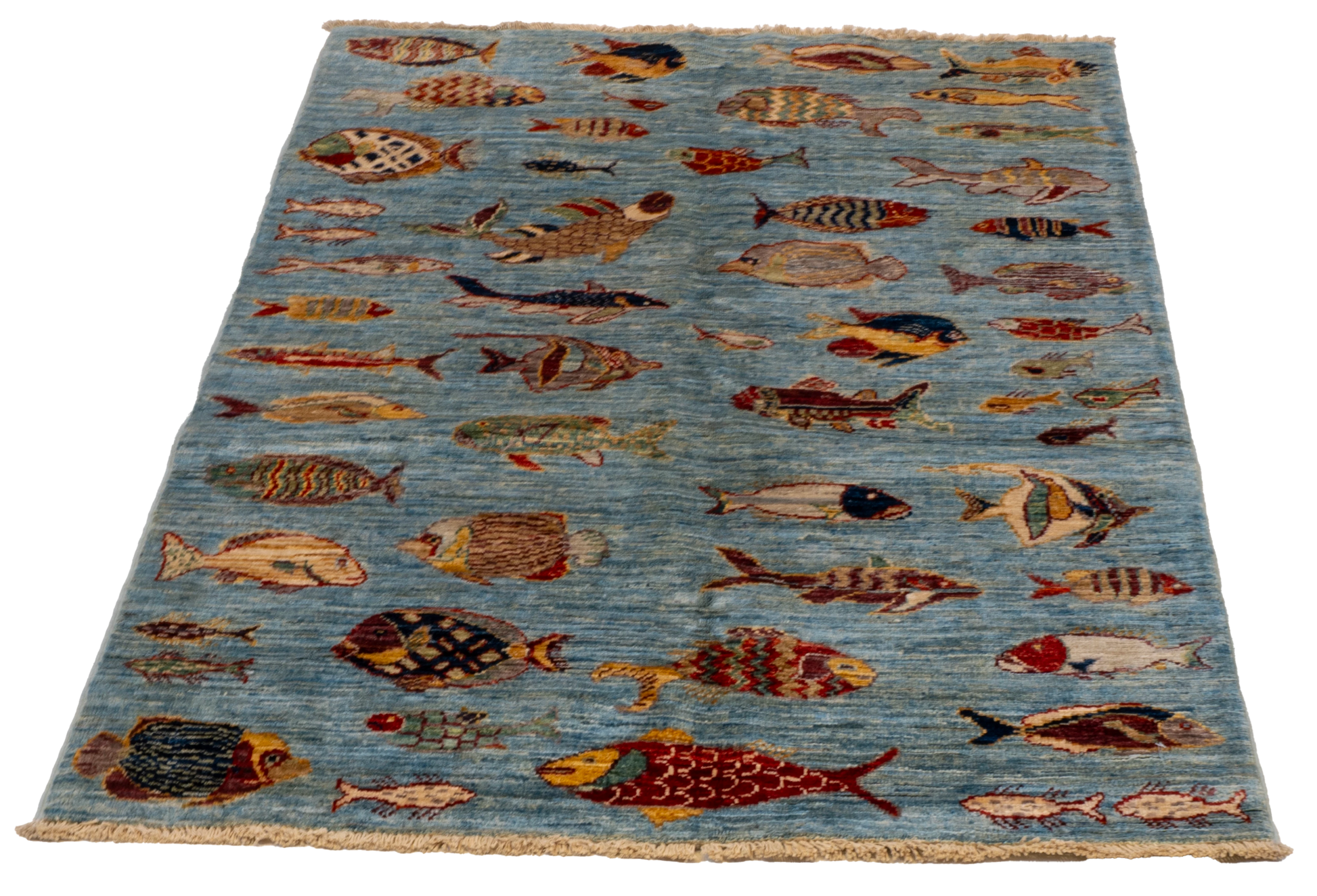 W 3.3 L 4.9 Fish 100% Wool Hand-Woven All-Over Design - 66721