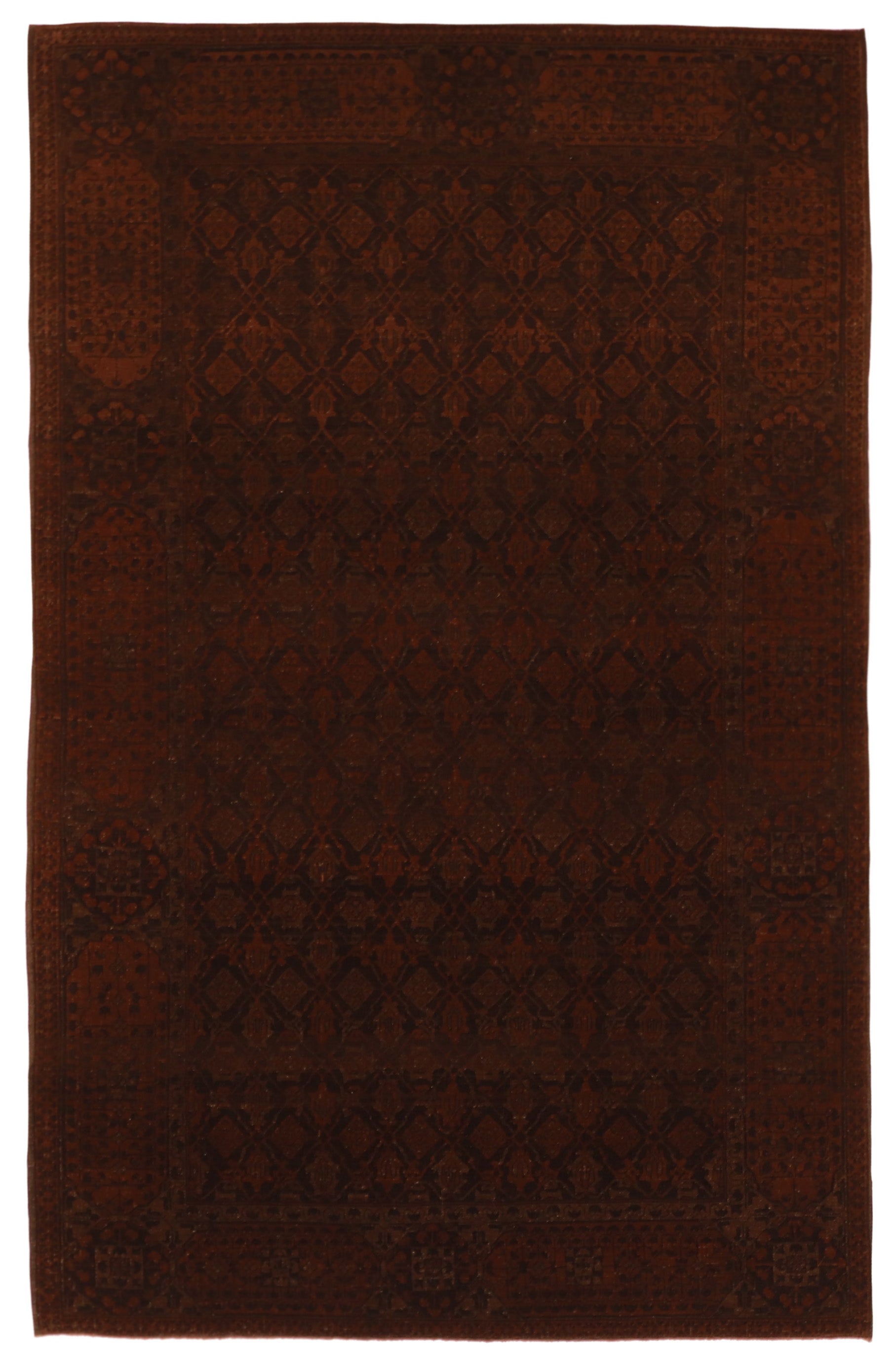 This Baluch Rug presents a richly layered all-over pattern rendered in deep chocolate, umber, and near-ebony tones. Subtle geometric motifs emerge through the dense, tonal field, creating depth and quiet complexity rather than bold contrast. Hand-woven from 100% wool, the rug offers durability and a grounded presence in a versatile 4′8″ × 7′4″ format.