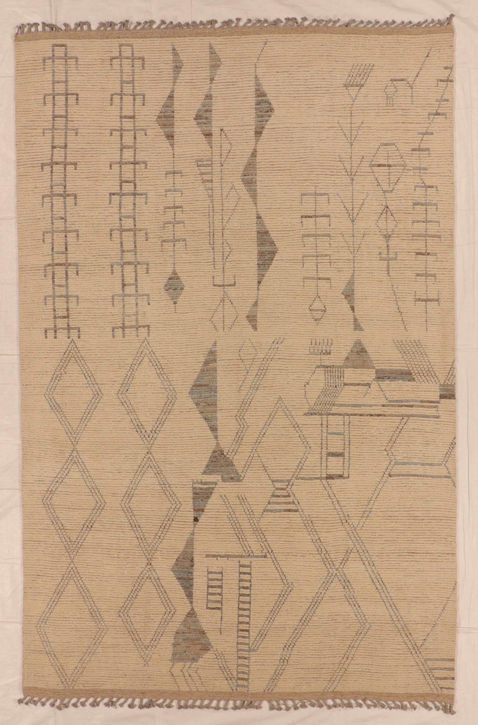 Moroccan geometric rug, beige wool rug, 8x12 Moroccan carpet, handmade wool rug India, SKU 66176, Kismet Fine Rugs