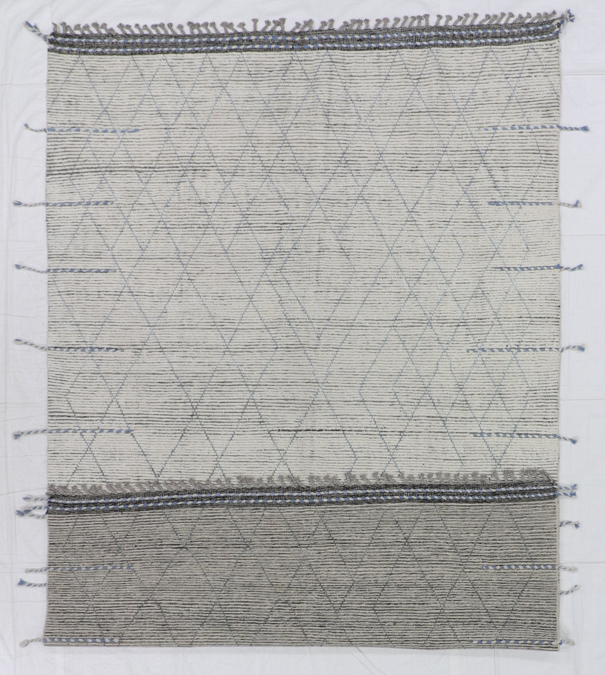 Moroccan rug ivory grey blue lattice Persia 66175 8x12 hand-knotted wool minimalist design Kismet Fine Rugs