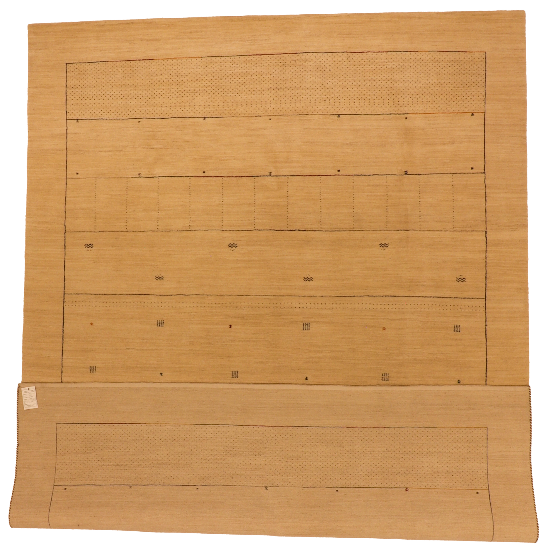 This Mountain Modern Rug features a calm, all-over composition of soft horizontal bands accented by fine linear and geometric motifs. Hand-woven from 100% wool, it offers a smooth, durable feel and, at 9′1″ × 12′2″, provides a refined foundation for living rooms, bedrooms, or open interiors seeking warmth without visual weight.