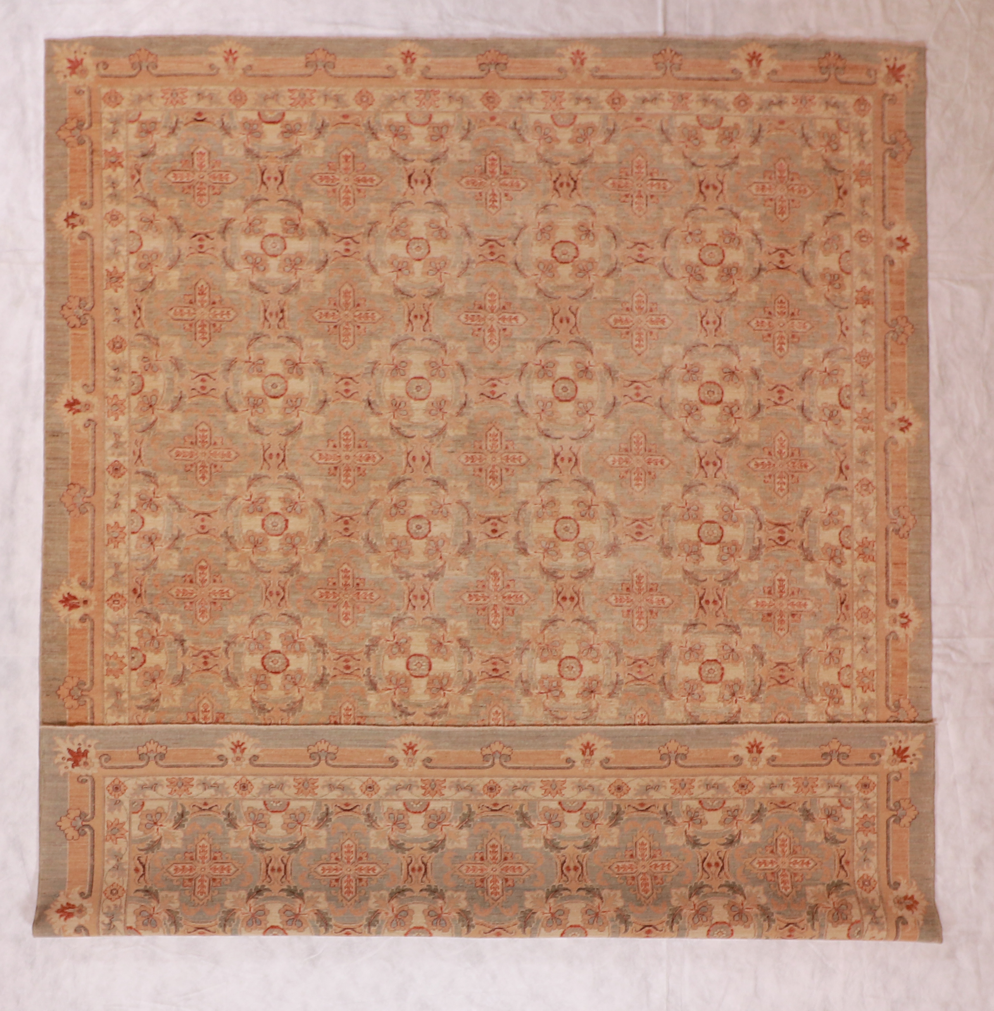 The warm terracotta detailing and soft sage field pair beautifully with natural woods, neutral upholstery, and classic décor. Ideal for grounding large rooms while adding subtle color and refined Persian artistry.
