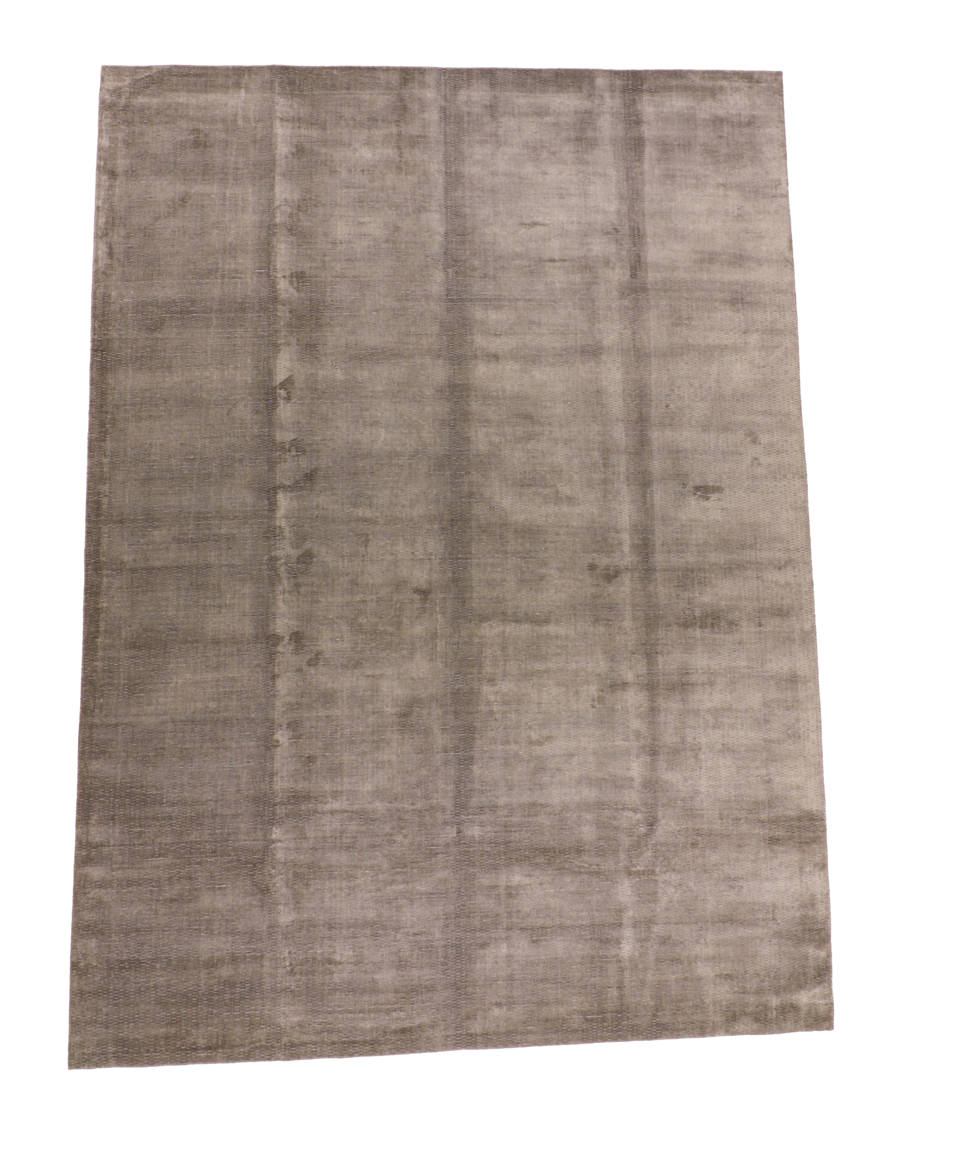Modern grey wool silk rug, 9x12 handmade rug India, SKU 66567, contemporary solid rug, Kismet Fine Rugs
